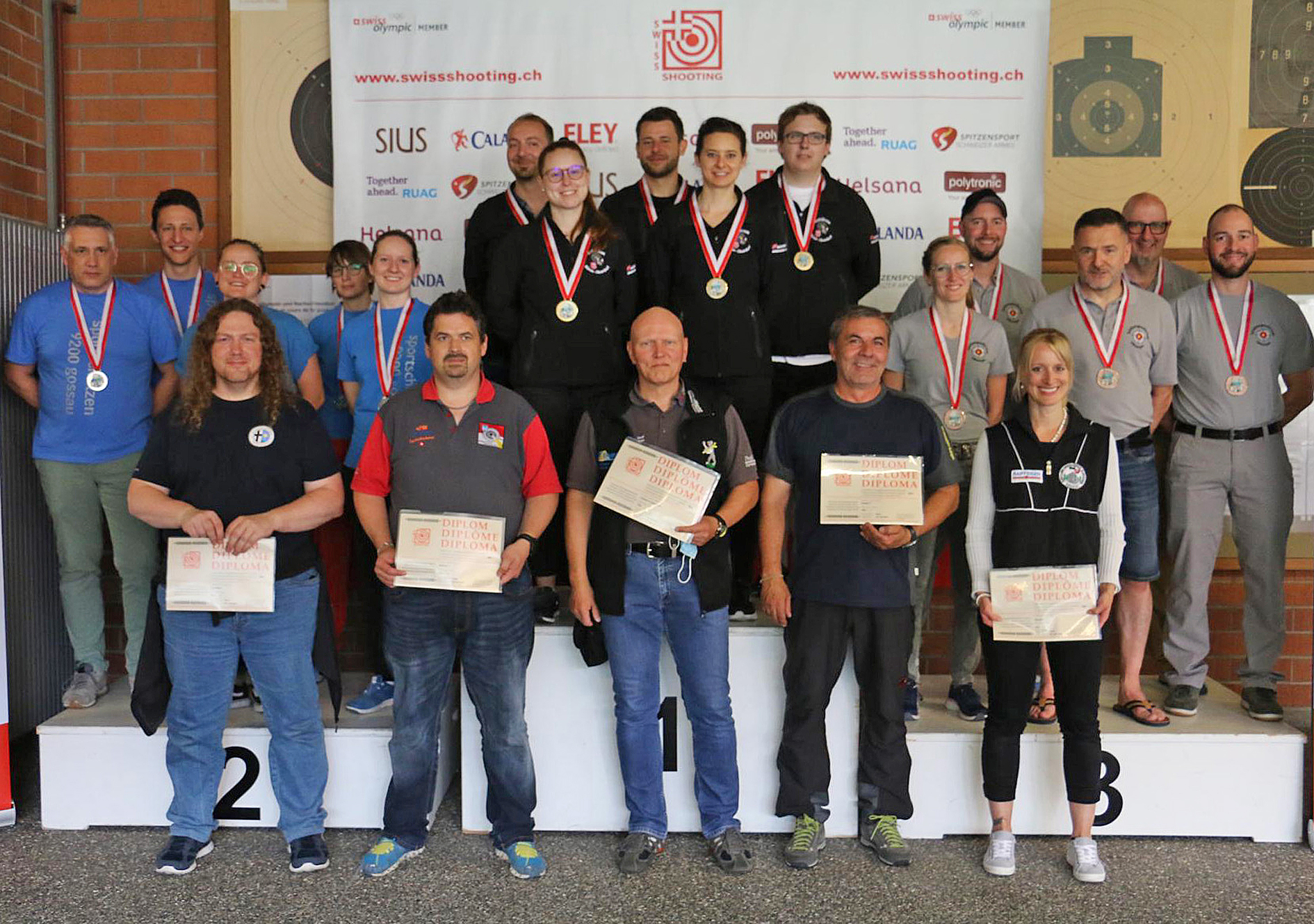 Gewehr 300 m, Feld A (30 Schüsse kniend): Ivan Füglister (272), Vanessa Zürcher (264), Markus Mathis (264), Rolf Denzler (283) und Rafael Bereuter (288).